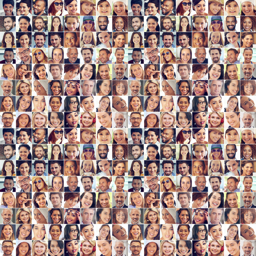A collage of diverse faces, showcasing a variety of expressions and emotions. The image features close-up portraits of men and women, possibly taken in different settings. The repetition suggests a collection of individual photographs, highlighting h